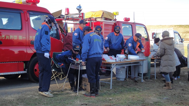 消防団の皆さんが警戒の他にお汁粉まで、ふるまってくれました