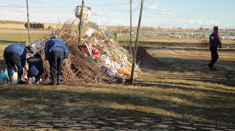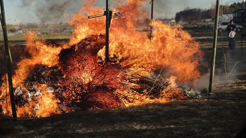 消防団指導下で点火です(直前のお祓いを撮影できませんでした)