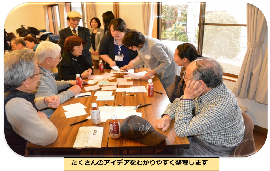 ”あったらいいな” アイデア項目の集約表 みらいの語り場 :住民が集い布施新町のみらいに何が必要かの意見交換 実施日 :2017年3月31日 布施新町ふるさとセンター 2017年4月16日 マザーズガーデン会議室 参加者合計65人